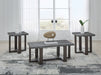 Details Includes coffee table and 2 end tables, Made with MDF substrates, melamine and decorative paper laminate, Faux soapstone pattern, Replicated walnut wood grain with rich dark wood-tone finish, MEGA-TUFF® melamine surfaces are made of easy-clean melamine which is heat-, scratch-, water- and stain-resistant
