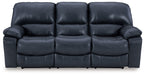 Focus on function. This practical power reclining sofa balances contemporary character and irresistible comfort. Its affordable, expertly matched leather and faux leather upholstery keeps your style up to speed without breaking the bank. Reclining with the touch of a button, this piece plays well in relaxed, luxe seating areas made for quality time.