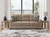 Strike a balance between the indulgent comfort you crave and the contemporary aesthetic you long for. The fabulously soft, mocha-colored upholstery of this sofa takes neutrals to new heights. Plus there's plenty of room to spread out and relax solo or with your bestie. Geometric-patterned accent pillows perfect the richly on-trend aesthetic.