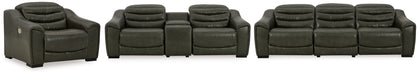Details U63404S5: Includes 3 pieces: left-arm facing power recliner, armless chair and right-arm facing power recliner, "Left-arm" and "right-arm" describe the position of the arm when you face the piece, One-touch power control with adjustable positions, Easy View™ adjustable headrest and zero-draw USB port, Zero-draw technology only consumes power when the USB receptacle is in use, Corner-blocked frame with metal reinforced seat, Attached cushions, High-quality foam cushions wrapped in poly fiber, 100% top grain leather covers inside areas such as the back, seat and arm cushions; skillfully matched faux leather covers the remaining areas, Due to its natural origin, real leather can show individual characteristics such as healed scars, growth marks, grain variation and shade variation, Natural variations make each hide unique and do not detract from the wearing qualities of leather, Zero wall recliner design requires minimal space between wall and chair back, Power cord included; UL Listed, U63404S2: Includes 3 pieces: left-arm facing power recliner, console with storage and right-arm facing power recliner, "Left-arm" and "right-arm" describe the position of the arm when you face the piece, One-touch power control with adjustable positions, Easy View™ adjustable headrest and zero-draw USB port, Zero-draw technology only consumes power when the USB receptacle is in use, Corner-blocked frame with metal reinforced seat, Attached cushions, High-quality foam cushions wrapped in poly fiber, 100% top grain leather covers inside areas such as the back, seat and arm cushions; skillfully matched faux leather covers the remaining areas, Due to its natural origin, real leather can show individual characteristics such as healed scars, growth marks, grain variation and shade variation, Natural variations make each hide unique and do not detract from the wearing qualities of leather, Console with 2 cup holders, hidden storage, dual 110V outlets and dual USB charging ports, Zero wall recliner design requires minimal space between wall and chair back, Power cord included; UL Listed, U6340413: One-touch power control with adjustable positions, Easy View™ adjustable headrest and zero-draw USB port, Zero-draw technology only consumes power when the USB receptacle is in use, Zero-gravity mechanism (raises the ottoman to improve circulation), Corner-blocked frame with metal reinforced seat, Attached cushions, High-quality foam cushions wrapped in poly fiber, 100% top grain leather covers inside areas such as the back, seat and arm cushions; skillfully matched faux leather covers the remaining areas, Due to its natural origin, real leather can show individual characteristics such as healed scars, growth marks, grain variation and shade variation, Natural variations make each hide unique and do not detract from the wearing qualities of leather, Power cord included; UL Listed,