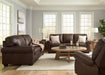 Details | 5210738: Corner-blocked frame, Attached back and loose seat cushions, High-quality foam cushions wrapped in poly fiber, 100% top grain leather covers inside areas such as the back, seat and arm cushions; skillfully matched faux leather covers the remaining areas, Due to its natural origin, real leather can show individual characteristics such as healed scars, growth marks, grain variation and shade variation, Natural variations make each hide unique and do not detract from the wearing qualities of leather, Pigmented corrected grain leather with slight embossing and a light contrast spray effect to add more depth, Exposed feet with faux wood finish, Platform foundation system resists sagging 3x better than spring system after 20,000 testing cycles by providing more even support, Smooth platform foundation maintains tight, wrinkle-free look without dips or sags that can occur over time with sinuous spring foundations, 5210735: Corner-blocked frame, Attached back and loose seat cushions, High-quality foam cushions wrapped in poly fiber, 100% top grain leather covers inside areas such as the back, seat and arm cushions; skillfully matched faux leather covers the remaining areas, Due to its natural origin, real leather can show individual characteristics such as healed scars, growth marks, grain variation and shade variation, Natural variations make each hide unique and do not detract from the wearing qualities of leather, Pigmented corrected grain leather with slight embossing and a light contrast spray effect to add more depth, Exposed feet with faux wood finish, Platform foundation system resists sagging 3x better than spring system after 20,000 testing cycles by providing more even support, Smooth platform foundation maintains tight, wrinkle-free look without dips or sags that can occur over time with sinuous spring foundations, 5210725: One-pull reclining motion, Corner-blocked frame with metal reinforced seat, Attached back and seat cushions, High-quality foam cushions wrapped in poly fiber, 100% top grain leather covers inside areas such as the back, seat and arm cushions; skillfully matched faux leather covers the remaining areas, Due to its natural origin, real leather can show individual characteristics such as healed scars, growth marks, grain variation and shade variation, Natural variations make each hide unique and do not detract from the wearing qualities of leather, Pigmented corrected grain leather with slight embossing and a light contrast spray effect to add more depth, | |