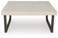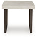 Details Includes coffee table and end table, Made with hardwood solids, decorative melamine laminate and MDF substrate, Legs finished in dark espresso brown color with dark wood grain contrast, Durable light gray faux cement laminate on tops, Assembly required
