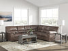 Modern comfort never looked so good. Sporting supremely soft yet durable cushions accented with high-fashion jumbo stitching, this stunning sectional is the ultimate choice in comfortably cool, contemporary style. Its caramel-hued faux leather indulges with an upscale feel and wows like the real thing.