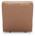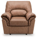 Modern comfort never looked so good. Sporting supremely soft yet durable cushions accented with high-fashion jumbo stitching, this stunning rocker recliner is the ultimate choice in comfortably cool, contemporary style. Its caramel-hued faux leather indulges with an upscale feel and wows like the real thing. And the recliner's pull-tab reclining makes it easy to kick back and relax.