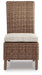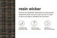 Details | All-weather resin wicker handwoven over powder coated rust-resistant aluminum frame, Cushion covered in high-performing Nuvella® fabric, All-weather foam cushion core wrapped in soft polyester, Clean fabric with mild soap and water, let air dry; for stubborn stains, use a solution of 4 oz. bleach to 28 oz. water, Imported fabric and fill | |