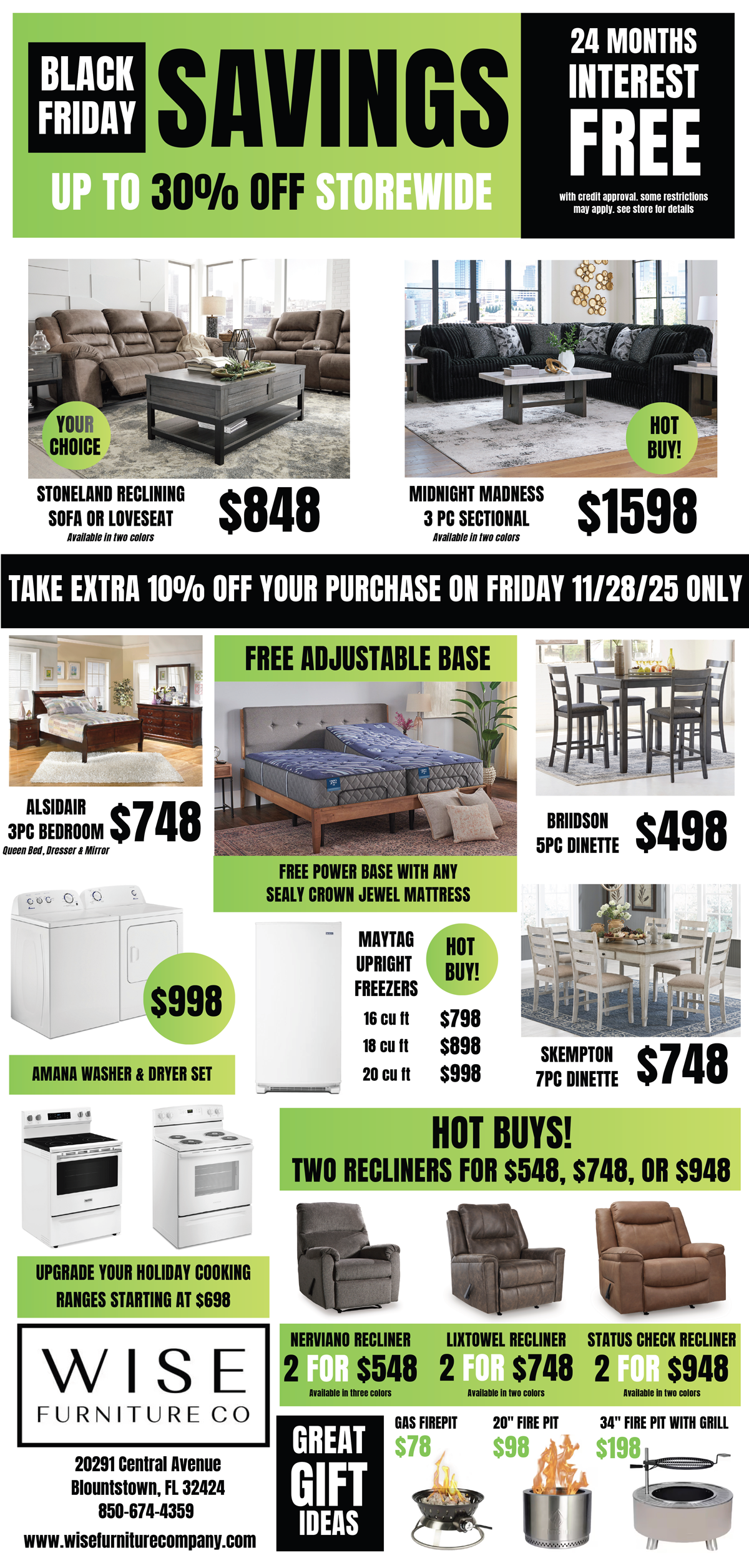 WELCOME TO WISE FURNITURE COMPANY OF BLOUNTSTOWN, FLORIDA
