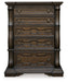 Details | B947B5: Includes upholstered panel headboard, upholstered panel footboard and panel rails, Made with hardwood solids, oak and ash swirl veneers, MDF substrates and cast resin components, Dark brown finish, Polyester upholstery with button tufting, Foundation/box spring required, sold separately, Mattress available, sold separately, Assembly required, B947B1: Includes dresser and mirror, Made with hardwood solids, oak and ash swirl veneers, MDF substrates and cast resin components, Dark brown finish, 6 smooth-gliding drawers with dovetail construction (top drawer felt lined), Drawer pulls with antiqued goldtone finish, Mirror attaches to back of dresser, B947-46: Made with hardwood solids, oak and ash swirl veneers, MDF substrates and cast resin components, Dark brown finish, 5 smooth-gliding drawers with dovetail construction (top drawer felt lined), Drawer pulls with antiqued goldtone finish, | |