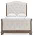 Details | B944B2: Includes upholstered sleigh headboard, upholstered sleigh footboard, sleigh rails and slats, Made with solid wood frames, solid wood blocking and foam, Light brown finish with glazed antiqued look , Polyester upholstery, Aged bronze-tone nailhead trim, Foundation/box spring required, sold separately, Mattress available, sold separately, Assembly required, B944B1: Includes dresser and mirror, Made with hardwood solids, oak and ash veneer, MDF substrates and cast resin components , Top with inlaid ash veneer border, Light brown finish with glazed antiqued look , Metal hardware with aged bronze-tone finish , 9 drawers with fully finished interior, dovetail construction and heavy duty ball-bearing side glides, Mirror attaches to back of dresser, B944-93: Made with hardwood solids, oak and ash veneer, MDF substrates and cast resin components, Top with inlaid ash veneer border, Light brown finish with glazed, antiqued look, Metal hardware with aged bronze-tone finish, 3 drawers with fully finished interior (top drawer felt lined), dovetail construction and heavy duty ball-bearing side glides, 110V power supply with USB-A and USB-C charging ports, Power cord included; UL Listed, | |