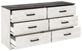 | Details | Made with engineered wood (MDF/particleboard/plywood) and decorative laminate for the right balance of affordability and durability, Whitewash replicated worn through paint, Top with rustic gray planked replicated oak grain with authentic touch, Pewter-tone pulls, 6 smooth-gliding drawers with vinyl-wrapped sides and back, Safety is a top priority, clothing storage units are designed to meet the most current standard for stability, ASTM F 2057 (ASTM International), Drawers extend out to accommodate maximum access to drawer interior while maintaining safety, Assembly required | |